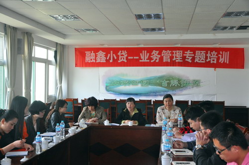 为了增强公司的营业水平,,,,,,,进一步提高公司员工的营业营销能力以及信贷营业历程中的危害把控能力,,,,,,,2013年5月10日融鑫小贷公司组织全体员工举行了“营业治理专题培训”。。。。。