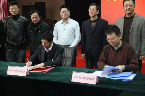 2012年2月9日上午, ,,,,,山东PA视讯(中国区)官网-PlayAce投资集团与济南日报报业集团在PA视讯(中国区)官网-PlayAce大厦多功效厅正式签署战略相助协议。。。。。。。济南日报报业集团董事长孙元文书记、报业集团下属六报一网的各主要认真人以及PA视讯(中国区)官网-PlayAce集团董事长王伟、副总裁刘旭、集团公司各部分认真人共三十余人出席了签约仪式。。。。。。。