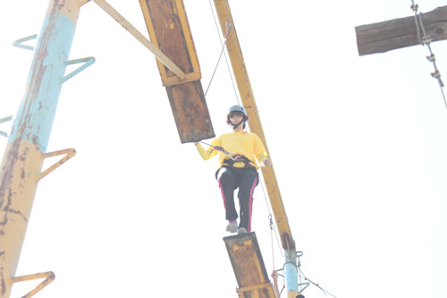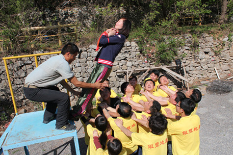 拓展训练时代,,,,,各队划分举行了“空中单杠”、“天梯”、“断桥”、“高空相依” “瞽者方阵”、“团队战鼓”、“圣塔”、“背摔”“蛟龙出海”等拓展项目。。。。。。。。各队成员充分验展自己最大的潜能,,,,,尤其在高空类项目中敢于挑战自我、逾越自我,,,,,配合团队配合完成了使命。。。。。。。。在整体角逐中,,,,,“团队战鼓”的效果突破了拓展训练营内坚持五年的纪录,,,,,颠球数目高达1211个。。。。。。。。