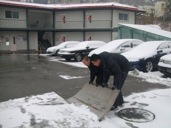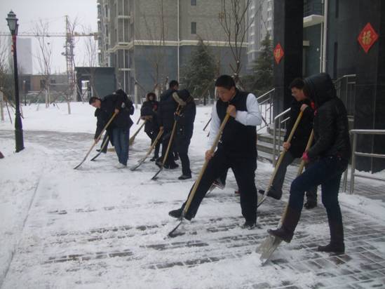 扫除庭院积雪,,,,,,,,利便业主出行。。。。。。。。