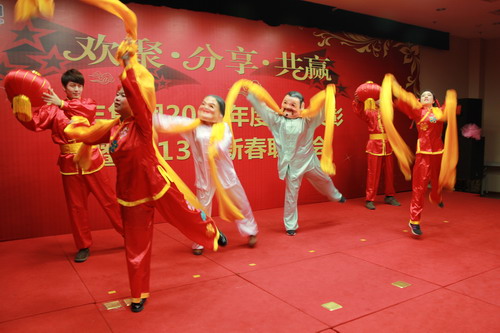 在一段喜庆欢快的舞蹈《红红的日子》开场后,,,,,,PA视讯(中国区)官网-PlayAce集团2013年新春联谊会拉开了序幕。。。。。。。《my heart will go on》又把我们带回了泰坦尼克号那惊心动魄、感人肺腑的一刻;;;;;;;《甄嬛外传》让我们重温了一遍海内最火的电视剧;;;;;;;舞蹈《丰收时节》预示着在2013年PA视讯(中国区)官网-PlayAce集团必将获得大丰收;;;;;;;舞蹈串烧《PA视讯(中国区)官网-PlayAcestyle》、群口相声《八仙贺岁》诙谐滑稽,,,,,,赢得全场喝彩;;;;;;;集团公司向导的压轴节目《三句半》更是将晚会推向了热潮!联谊会中还穿插举行了激感人心的抽奖运动,,,,,,增进了员工之间的联谊互动。。。。。。。联谊会竣事后,,,,,,集团向导与全体参会职员共进晚餐,,,,,,喜迎新春!